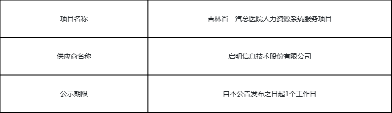 吉林省一汽总医院人力资源系统服务项目采购结果公告