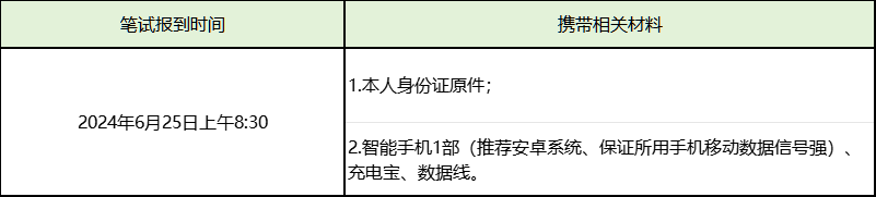 本次笔试考试必须在考试现场完成,未能按时到达考试现场者不能参加笔试考试。正式考试系统使用注意事项在考试系统中查看,请认真阅读考试注意事项,因个人未按要求操作导致考试成绩无效等情况,后果自负。