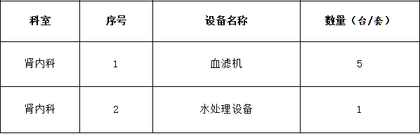 专用设备购置项目——肾内科血滤机、水处理设备 采购项目需求调研