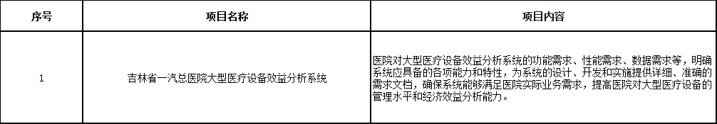 吉林省一汽总医院大型医疗设备效益分析系统需求调研(二轮)
