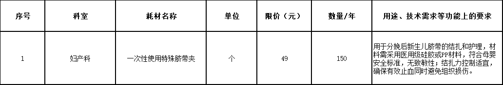 现我单位对吉林省一汽总医院妇产科脐带夹以询价采购的方式进行采购。
