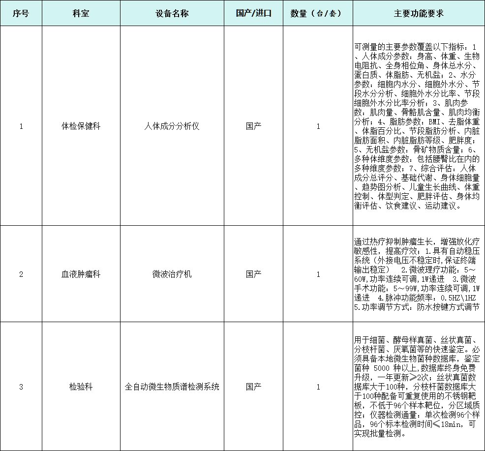 现对吉林省一汽总医院2026年医疗设备购置项目—体检保健科、血液肿瘤科、医学检验科进行需求调研: