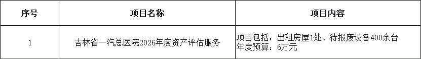 吉林省一汽总医院2026年度资产评估服务需求调研