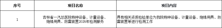 吉林省一汽总医院特种设备、计量设备、绝缘用具、防雷装置2026年检测服务需求调研
