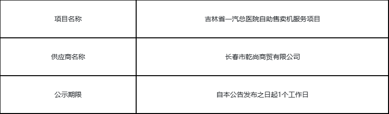 吉林省一汽总医院自助售卖机服务项目成交结果公告