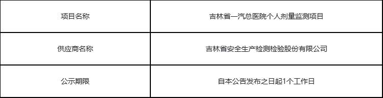 吉林省一汽总医院个人剂量监测项目成交结果公告