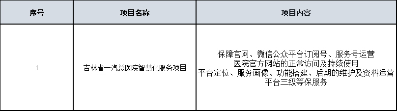吉林省一汽总医院智慧化服务项目需求调研(二轮)