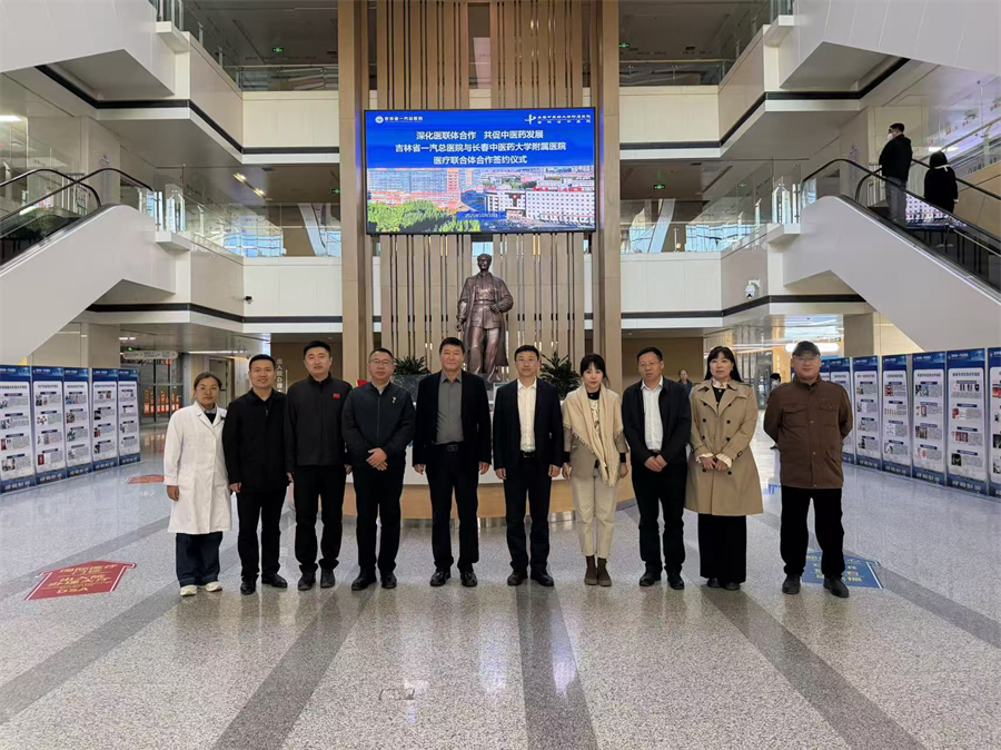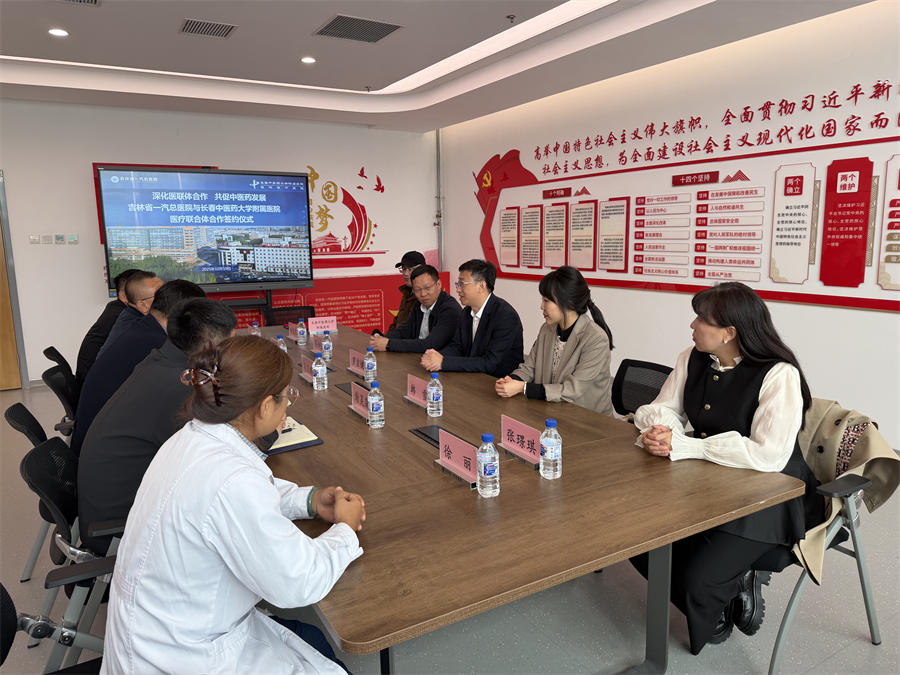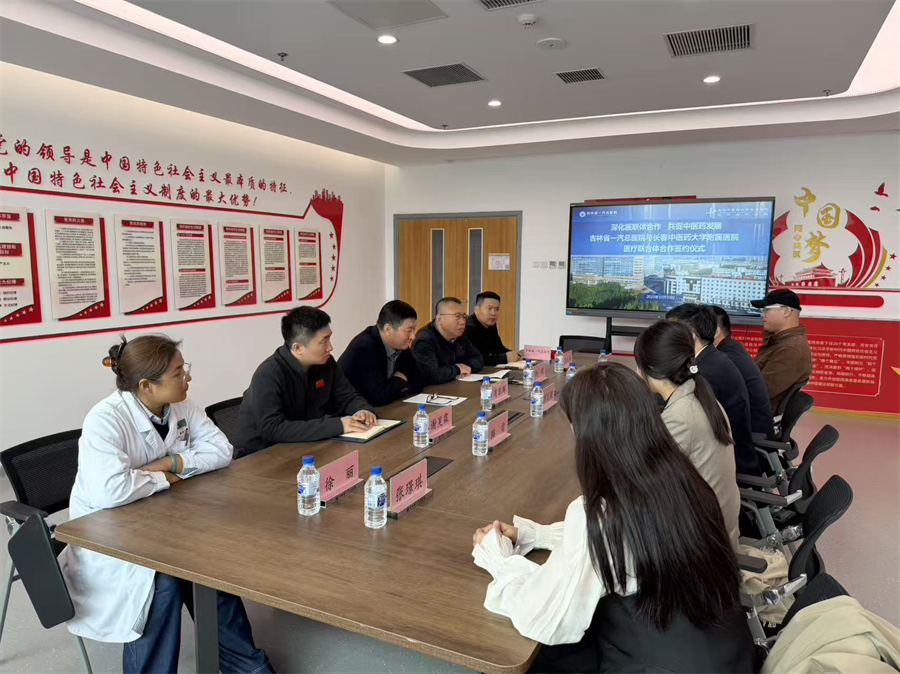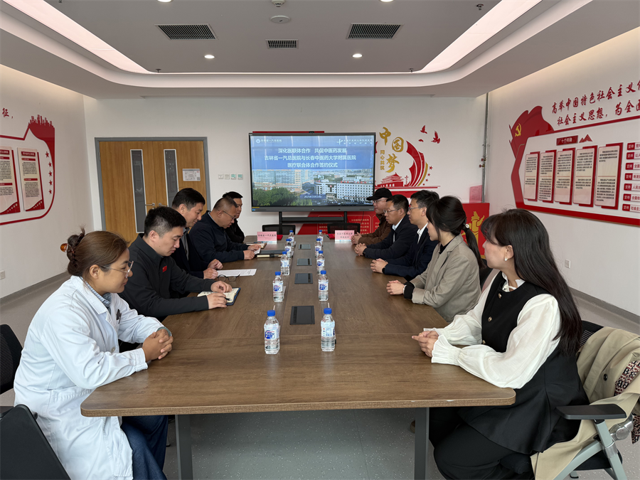 为充分整合综合医院临床资源与中医药专科医院技术优势,推动中西医协同发展理念落地生根,10月10日,吉林省一汽总医院与长春中医药大学附属医院医疗联合体合作签约仪式顺利举行,双方将以专科联盟为纽带,在特色专科建设、人才培养等领域深度合作。长春中医药大学附属医院院长罗宗键一行五人、我院纪委书记肖东辉(主持工作)及相关职能科室主任参加了签约仪式,仪式由副院长孙刚主持。