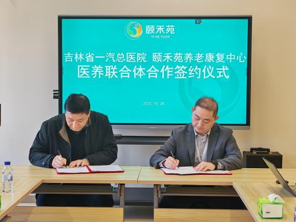 为响应国家“老有所养、病有所医、康养结合”号召,切实提升汽开区长者晚年的幸福感与获得感,10月28日上午,吉林省一汽总医院与颐禾苑养老康复中心在颐禾苑颐福楼1层大厅举行了医养联合体合作签约仪式。吉林省一汽总医院纪委书记肖东辉及相关科室负责人与颐禾苑养老康复中心集团副总经理金立刚、院长程鹏等人共同出席仪式。