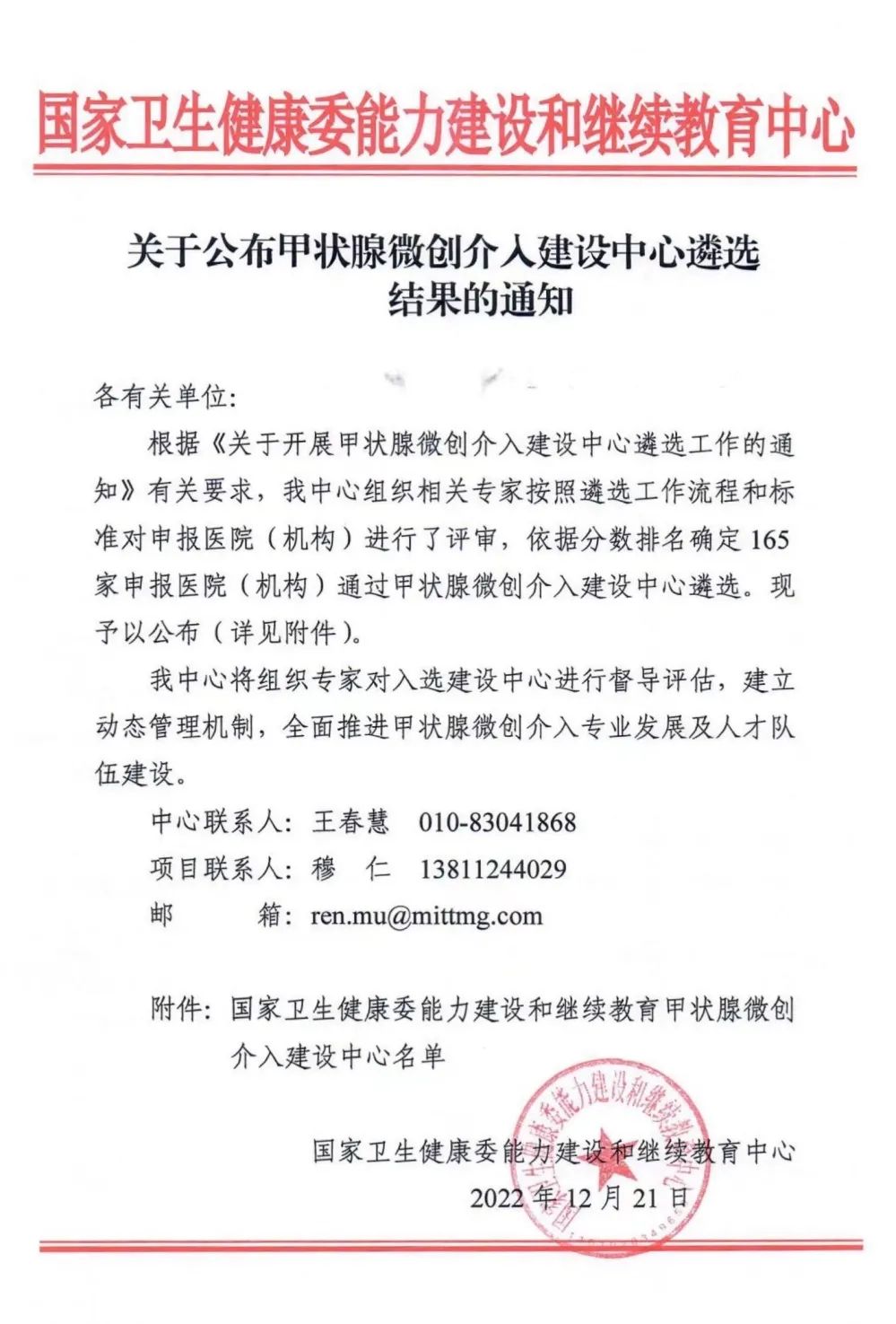 祝贺!我院电诊科获批国家级甲状腺微创介入建设中心
