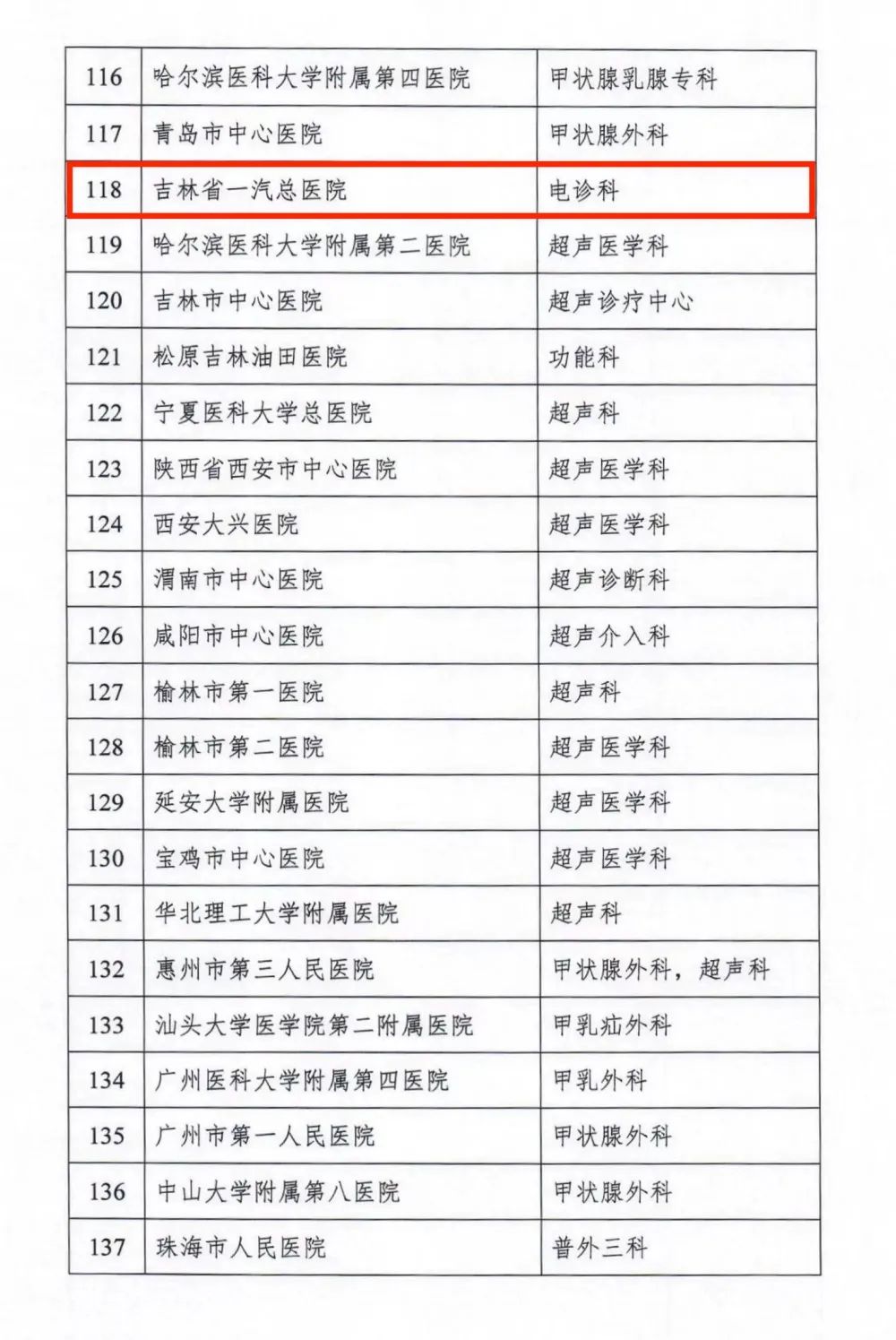 本次入选,既是对我院电诊科的充分肯定,同时也是一份责任,吉林省一汽总医院将在国家卫生健康能力建设和继续教育中心的指导下,搭好平台、搞好服务,不断增进合作交流,全面推进甲状腺微创介入专业发展及人才队伍建设,为深入贯彻落实健康中国战略,切实服务百姓健康贡献力量。