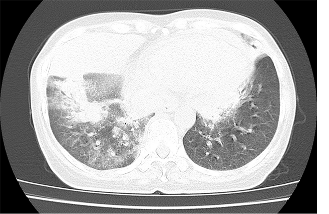 该患者患有“干燥综合征”,反复高热、寒战。入院2天前再次出现发热症状,并伴有胸闷、喘息,到我院急诊行肺CT检查见大范围肺部感染伴随实变,入院后病情急剧恶化,SPO2降至69%,BP64/42mmHg,体温高达40℃,患者持续高热,全身炎症反应重,血流动力学极不稳定——需要2种血管活性药较大剂量仍难以维持血压,迅速出现呼衰、肾衰、心衰等多器官功能面临衰竭表现,医疗团队判断是由脓毒症引发的“细胞因子风暴”在肆虐。